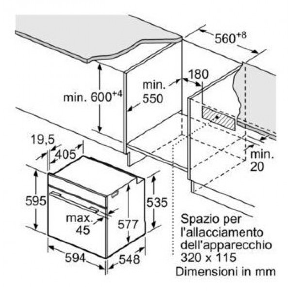 Dimensioni nicchia (AxLxP): 560 mm – 568 mm x 585 mm – 595 mm x 550 mm