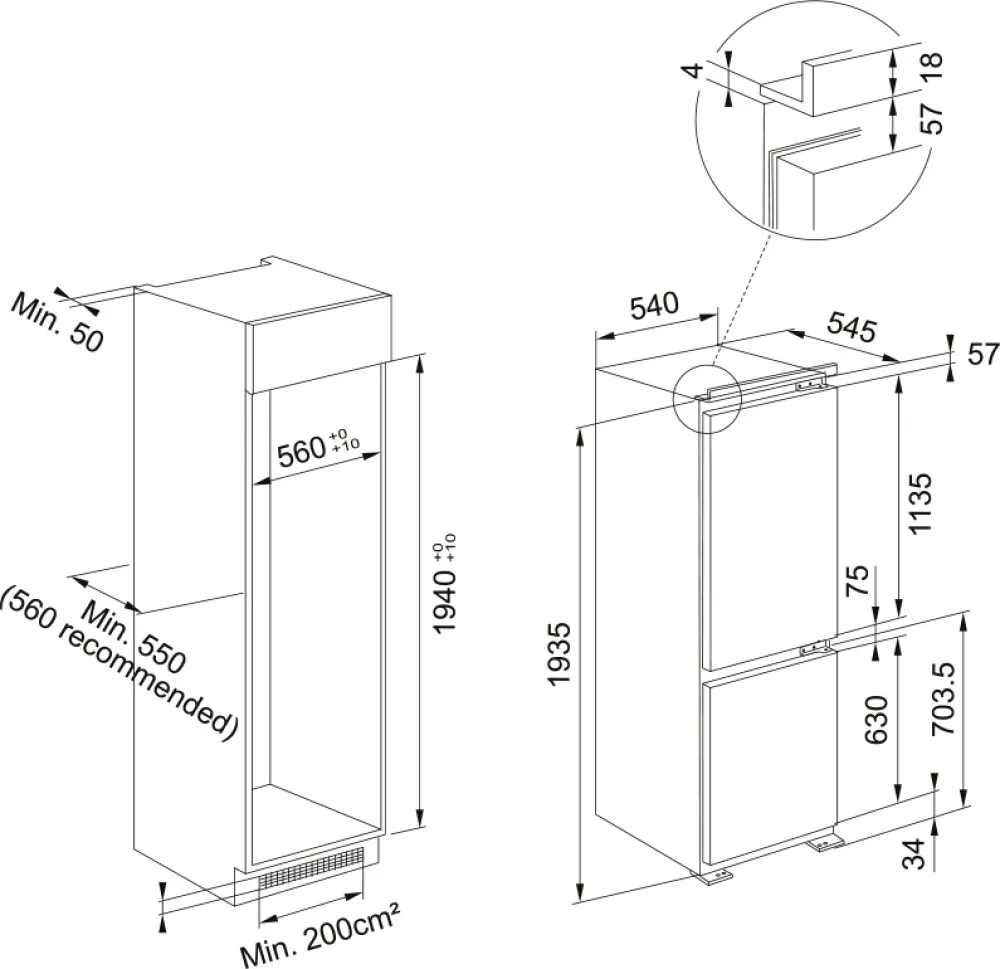 Profondità mobile incasso: 55 cm (minimo, raccomandati 56 cm)