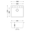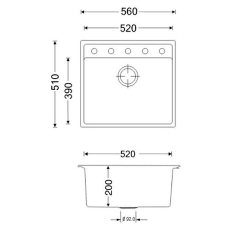 Dimensione: 560×510 mm • Profondità: 200 mm • Foro scarico: 3,5″ • Foro incasso: 540×490 mm • Base: 600 mm • Imballo in scatola: 880x585x360 mm • Peso: 20 Kg • Raccordo: 10 mm • Tipologia: incasso • F
