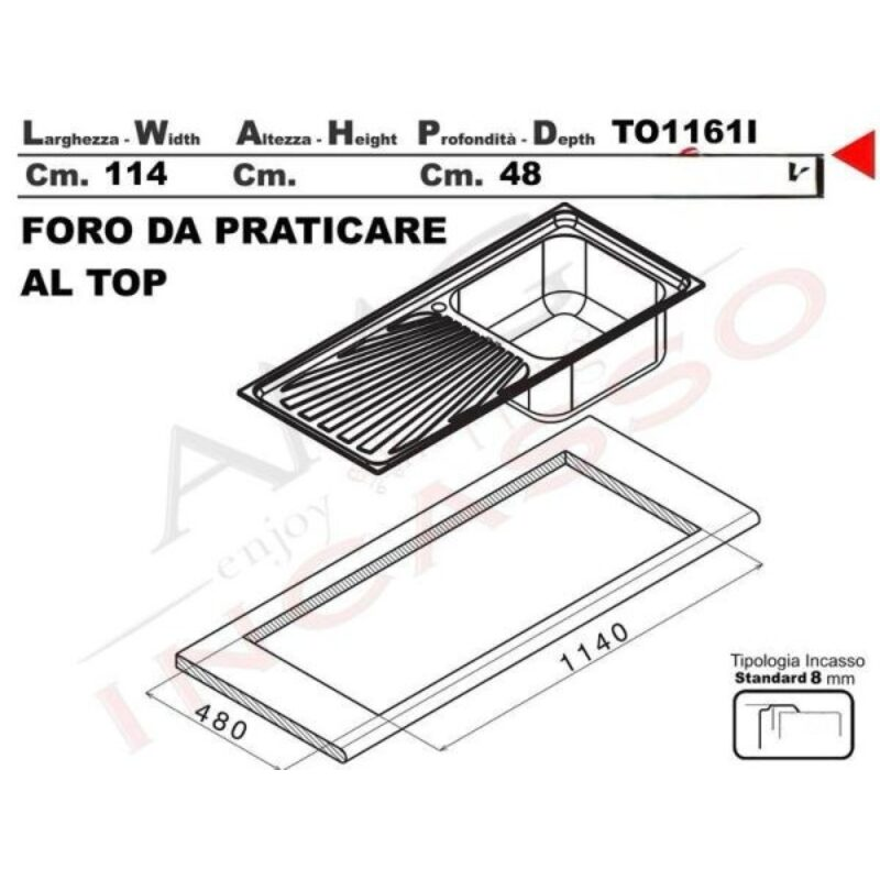 | Tipo | Lavello 1 Vasca con Gocciolaito Grande |