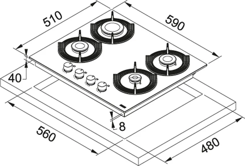 | Diametro del fornello/zona cottura 4 | 55 mm |