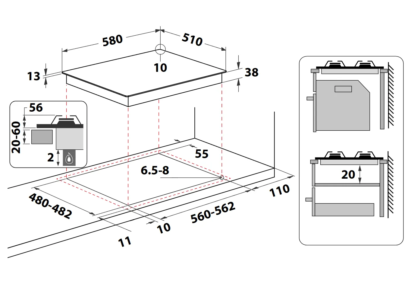 Dimensione della larghezza del piano cottura60 cm