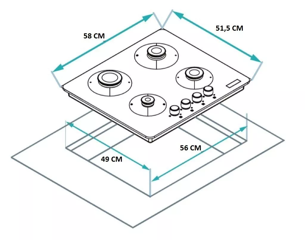 Piano cottura LAREL da Incasso a Gas 4 fuochi 60cm Inox L545X