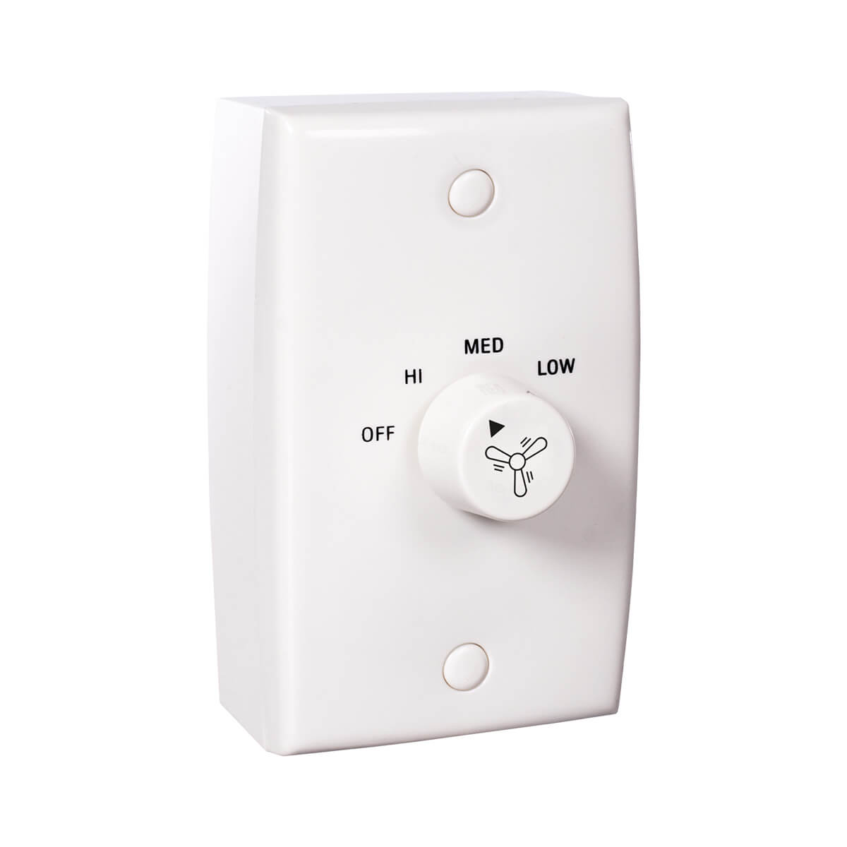 Ventilatore da soffitto. Ø pale 90 cm, in metallo bianco. 4 pale, 3 velocità 165/275/360 rpm. Comando murale. Potenza 65W.